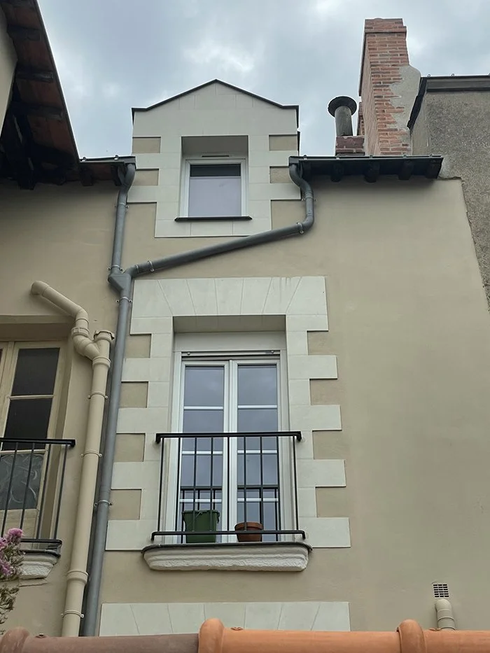 Les façades et les parties communes de cet immeuble ont entièrement été rénovées. Les pierres de tuffeau ont été remplacées et/ou nettoyées. Les murs ont été piqués et enduits.