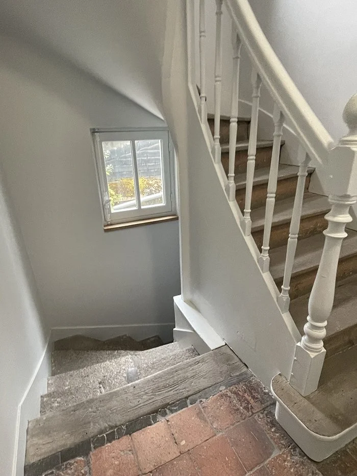 Les cages d’escaliers ont été entièrement rénovées. Les murs ont été peints ou piqués et enduit. Les sols ont été refaits en tommettes brique afin de retrouver le charme de l’époque.